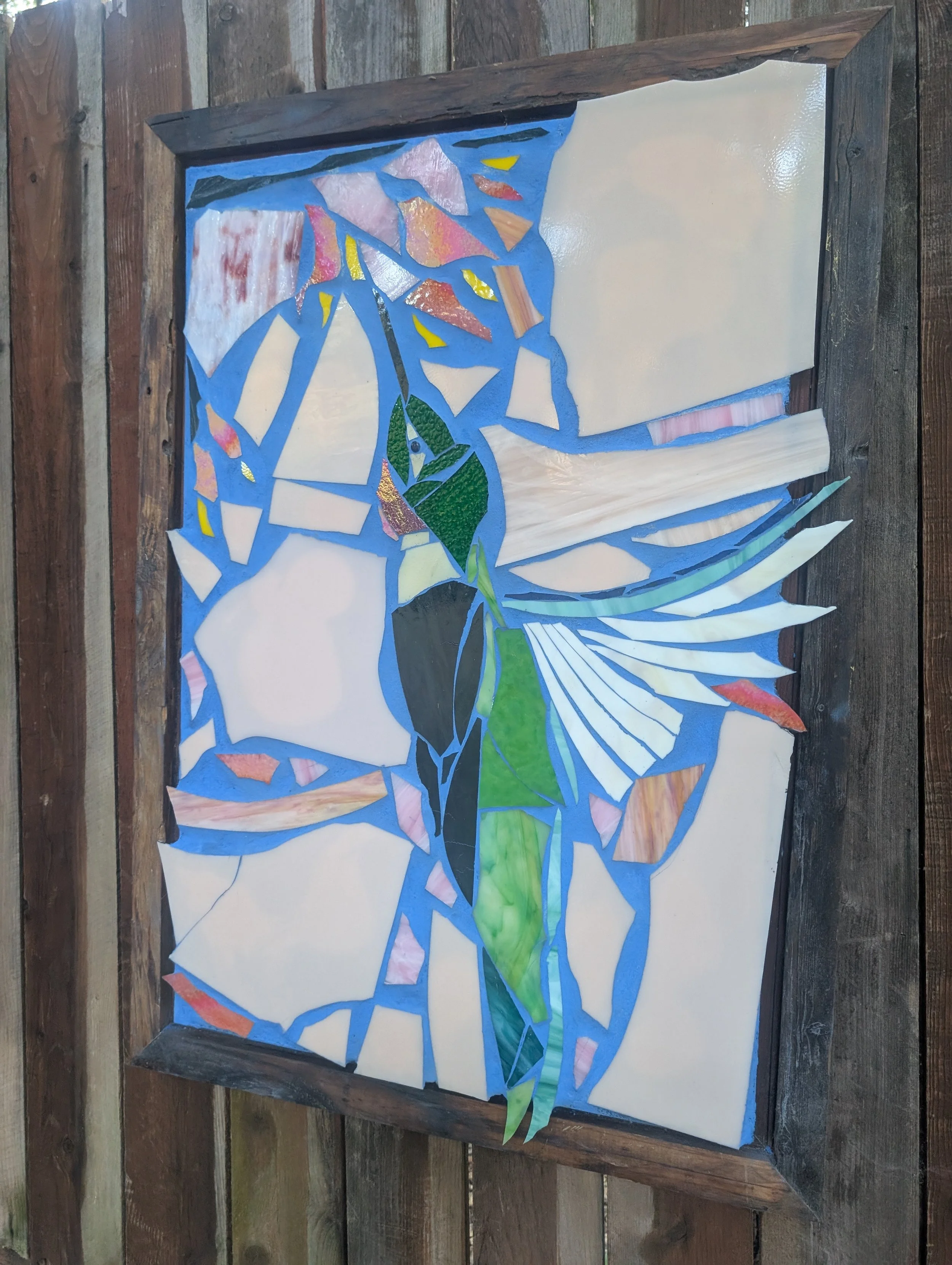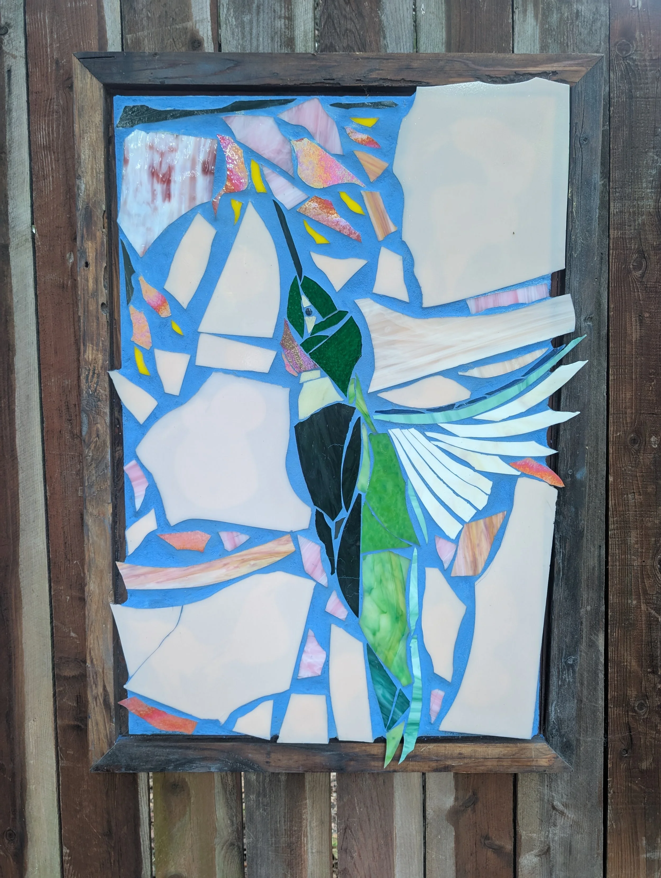 โA hummingbird hovers mid-flight, wings beating faster than the eye can follow โ a living spark between heaven and earth. In radiant shards of emerald, ruby, and sapphire glass, its body glimmers like a jewel caught in sunlight. Known across cultures as a messenger of joy, resilience, and the sweetness of life, the hummingbird teaches us presence: the nectar of now.